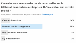 De notre côté, nous constatons chez nos clients PME et ETI une stabilisation des accords de télétravail, plus couramment avec 2 jours de distanciel par semaine 😉